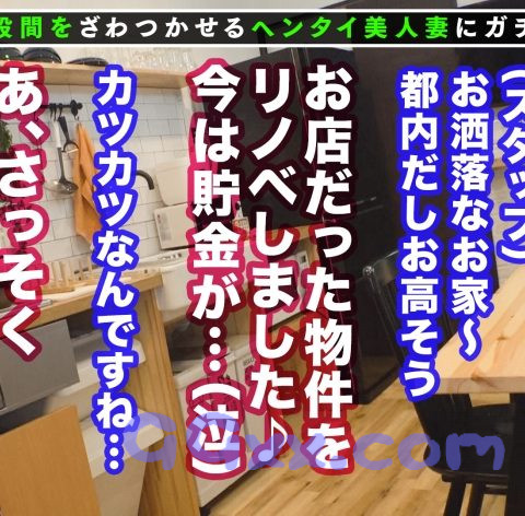 “刺激が欲しい”“ちょいムラ”“なんだかアソコがざわつく”そんな普通の主婦さん達の仮面に隠された性欲を剥き出しにしてあの手この手でヤリまくる何でもあり企画。【起】本日は豊島区の要町駅前でざわつく奥様を捜索。しばらく歩いているとお料理教室のビラ配りをしていたユキさん(30歳_料理教室の先生_子持ち)を発見!料理レッスンの撮影をお願いしてみると宣伝になるかもと快く了承♪早速、彼女のキッチンスタジオにいくことに!ユキさんの優しく丁寧なレッスンのおかげで料理は大成功!彼女インタビューを一通り終えた後、謝礼を条件に夫婦の性生活についても聞いてみると、なんとユキさん最近はセックスレスで火照った体を抑える為、オナニーをしてしまうという、我々にいつものオナニーを見せてほしいとお願いしてみると最初は拒否されたが、更なる謝礼を提示してみると彼女から渋々OKがでた【承】謝礼の為に我々の前でオナニー始めるユキさん初めはぎこちなかった手付きも興奮からか次第に激しくなり体をビクビクしながら感じまくる。こちらが用意した電マを手渡すと徐にびしょびしょに濡れたおマ○コあてがいイキまくる!【転】彼女の卑猥な姿に翻弄され思わず、ギンギンに勃起したチ○ポを差し出すと戸惑いながらも咥えてくれたユキさん、キュウキュウと口を窄めながらバキュームフェラをした後、いよいよ彼女のおマ○コに挿入!嫌がる素振りみせながらも体は正直で喘ぎ声を抑えながら悶絶イキ連発!こちらもマ○コの締め付けに我慢ができず禁断の中出し!【結】部屋を移動し子供の部屋で2回戦突入!さっきまでの彼女と違い男に跨り激しく腰を振って貪欲に快楽をむさぼる変態妻へと変貌!あまりの刺激に我慢ができず本日2回目の中出し!最後は夫婦の寝室で濃密なベロチュウをしながら愛し合う!最後もユキさんの膣奥にたっぷり中出し!浮気セックスの虜になってしまったユキさんでした♪