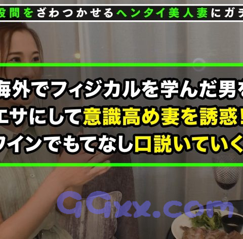 “刺激が欲しい”“ちょいムラ”“なんだかアソコがざわつく”そんな普通の主婦さん達の仮面に隠された性欲を剥き出しにしてあの手この手でヤリまくる何でもあり企画。【起】本日は新宿駅周辺でお仕事帰り(アフターファイブ)の奥様をターゲットに声掛けをしていきます。偶然スタッフと同じ色の服を着た女性を発見!早速声をかけてみるとドンピシャ!お仕事帰りの人妻さんでした。「マイさん(29)・結婚3年目・インテリアデザイナー」今から日頃通っているジムに行く予定だという彼女にネット番組のテイでインタビューをお願いすると快くOKしてくれた。【承】彼女が通うジムに場所を移してトレーニングをしながらインタビュー開始!バリバリのキャリアウーマンで会社でもチーフ職を務める彼女、最近は自分磨きにご執心で筋トレ&食生活で身体を鍛えあげているそうだ。そんな奥様を今回は優秀なトレーナーを紹介するという名目で彼女をホテルへ誘い込むことにする【転】ホテルへ着くと、お酒も手伝ってか夜の夫婦生活についての愚痴を爆発させる彼女。トレーナーにいやらしく身体を触られて段々とその気なってしまったようだ。服を脱ぎながらネットリ舌を吸いあげる強烈ベロチュー!チ○ポをベロベロと舐め回し唾液まみれになりながら、パックリ咥えフェラチオでチ○ポをジュッポリ包み込む!!卑猥音が鳴り響く激しいクンニは唾液と愛液が絡み合い濡れ濡れぐちゅぐちゅマ○コに!おマ○コをひろげ挿入懇願!!荒々しい正常位の後はバックで突きながら、締りの良すぎるマ○コにチ○コは暴発!特濃中出し3連発!【結】まだまだヤリ足りないマイさん。全身にオイルをぶかっけて綺麗な肉体美を更に卑猥にコーティング!対面座位・側位・正常位、引き締まった体を躍動させ感じまくる衝撃SEX!体をエビ反りにさせながら強烈アクメ連発!最後は綺麗なお顔にたっぷりぶっかけFINISH!!貪るように身体を求め合う汗だく肉弾SEXに目が離せない!!