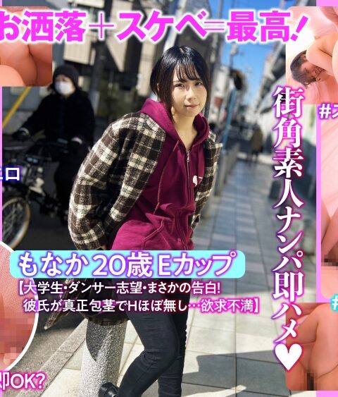 街頭で見つけたお洒落で可愛い女の子!すみませ~んストリートスナップの撮影をやっている者なのですが…勿論それは声を掛けるための口実にしか過ぎない!しかし、これが令和最強ナンパ!女の子のナンパのハードルが下げるのが目的。一通りスナップ撮影後、実は…他にもネットの番組で~ちょっとだけセクシーな番組なんですが、インナー(下着)チェックとか勿論、別途謝礼はお支払い致します。超絶!お洒落だね!可愛いね!素敵だね!誉めて褒めちぎってキャッシュと言う名の絶対的パワーで必死にお願いすれば道は開ける!女の子のオマタも開ける!気が付けば、産まれたての姿に!優しく受け入れOK!凸ります!貴方の中へ!もなかさん20歳ダンサー目指す大学生!彼氏が真性包茎でHほぼ無し欲求不満みたい!徹底的にサービスいたします!