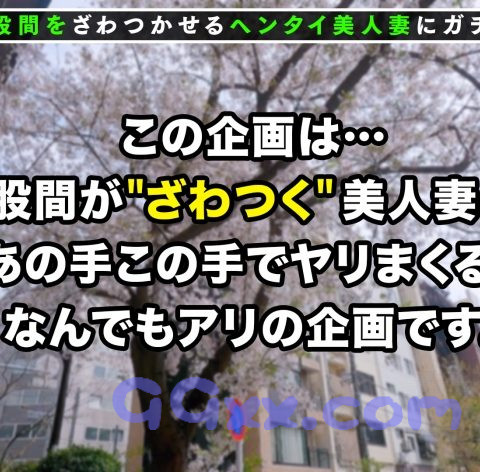 “刺激が欲しい”“ちょいムラ”“なんだかアソコがざわつく”そんな普通の主婦さん達の仮面に隠された性欲を剥き出しにしてあの手この手でヤリまくる何でもあり企画。【起】本日はお昼休みをとっている普通の専業主婦さんターゲットに杉並区の住宅街で声掛けをしていきます。【承】昼下がりの公園でママ友と談話中のリカさん(30歳_専業主婦_子持ち)を発見!ラフな服装でもスレンダーなモデル体型がひと目で分かる美人妻さんだ。ネット番組のテイで彼女のインタビューをお願いすると謝礼を条件にお宅にお邪魔することに成功!【転】リカさんの手料理をいただきながらインタビューをしていると話題は夫婦の夜の営みの事に、子供ができてからは回数が減ってしまいかなり欲求不満気味ようだ。こちらが更に謝礼を増やすので我々で解消してみてはと打診してみるとリカさんは少し戸惑いながら了承!そわそわとボディタッチを繰り返しているとリカさんは少しうっとりした顔に!Hな雰囲気に流されて濃密ベロチュウを交わし行為はどんどんエスカレート!まるでスーパーモデルのような体型のリカさんの体をねっとり愛撫すると彼女も我慢ができず浮気チ○ポを奥まで咥えながら舐めしゃぶる!出産してもまだまだ敏感なおマ○コはこちらが弄るたび蛇口のように大量な潮を吹きちらかす!もう我慢できんと人妻マ○コに生で挿入!びしょ濡れの膣壁がジュルジュル擦れる快感にイキ狂うリカさんこちらも我慢ができず禁断の人妻中出し!【結】部屋を移動し子供の部屋で2回戦突入!1回戦目が激しすぎたせいかおマ○コが馬鹿になってしまい放尿がごたるハメ潮を放出!イキまくるリカさん!子供オモチャの中で中出し2発目!今度は夫婦の寝室で汗だくになりながら激しく絡み合い最後はリカさんの綺麗なお顔にたっぷり射精!撮れ高バツグン!デカチンの虜になって完全にメスを化すドスケベ妻の姿を見逃すな!!