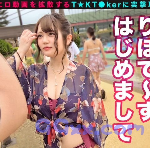 T☆kTokでエッチな動画を投稿するエロ可愛い女にDM(ダイレクトメッセージ)で連絡を取り、その場のノリでしれ~っとSEXまでしちゃおうという、次世代ナンパ企画!(1)今回は家族連れで賑わう大型プール施設で待ち合わせ!そこでプリティな水着に身を包んだ今回のT☆kT●kerリホちゃん(19歳)と合流!周りの男たちを釘付けにする特大おっぱいが魅力のエロエロ美少女だ!(2)せっかくプールに来たので彼女と一緒にプールで遊んでいると、突然「一緒にトイレに行こ♪」と施設内のトイレに引き込まれオッパイを丸出しにしちゃうリホちゃん。まずはお口で軽くご奉仕した後チ○ポによだれを垂らしてやわらか乳肉パイズリ!あまりの気持ち良さに射精感がドンドン高まるチ○ポにトドメの濃密おしゃぶり!大量のザーメンをお口で受け止める口内射精!盛り上がった気持ちおさまらずホテルへと移動することに(3)マシュマロのように気持ちよくて柔らかいHカップのおっぱいはまさに国宝級!若さ溢れるスベスベお肌の激エロ巨尻!欠点無しのド変態ボディをこれでもかと味わう超ハードSEX!!生ハメ中出しもノリでOKしちゃう頭空っぽな感じがヤバすぎる!もっとやりたいと延長戦希望の彼女にドエロなヒョウ柄衣装に着替えてもらい2回突入!今度は正常位でオッパイを揉みしだきながら強烈ピストン!締め付けがハンパない彼女の肉厚おマ○コに我慢ができず速攻中出し!!すぐに終わってしまい物足りない彼女の為にオマケのもう一回戦!!室内をシリーズ恒例のエロ映え部屋に変貌させテンショングン上がりの彼女はマシュマロパイズリからオイルプレイとサービス満点!デカチンをぶっ刺し激しく腰を振りまくる!激烈騎乗位に我慢ができず本日4度目となるザーメンを彼女の膣奥に注ぎ込む!揺れる爆乳、小悪魔フェイス、ナマイキおマ○コ!マジ最高っなリホち