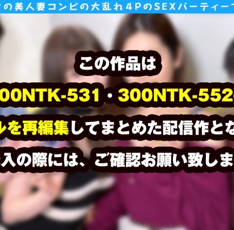 あらすじ:今回はW神ボディ!!ド淫乱人妻の浮気乱交SP!!、ぞくぞく会場に集まる淫乱妻、乾杯もそこそこに…!!淫乱スタート、濃厚接触が始まる!!、見せたがり美人妻!!、みんなで試食会!?、Wフェラ開始、酒池肉林モード、新たなる水源発見!!人妻ま●こ、W手マン!!、人妻の本気フェラ、広がる愛撫の輪!!、大人のフェラ…エロ過ぎ!!、同時挿入!!エロさ2倍!!、おかわりSEXもW収録!! ※300NTK-531/300NTK-552)を再編集してまとめた配信作となります。ご購入の際には、ご確認お願い致します※