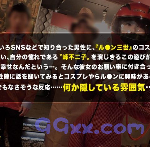 ○テーマ:夜の巷に出没するルックス&内面&etcがぶっ飛んだ素人女性の性態にグイグイ首を突っ込むドキュメンタリー○①激レアさんが必ずいるであろう夜の新宿。遠くで妙な感じが…赤いヘルメットに赤いラバースーツの女性に男性のカメラマンが歌舞伎町のド真ん中で撮影をしている。SNSなどに写真を投稿しているみたいだ。②これから撮影スタジオに移動するみたいなのでご同行させていただきました。移動中の車内で軽くお話を聞いたところ、ル●ン3世の峰●二子に憧れているみたいで、似ていると周りからも評判がいいようです。スタジオに到着するとル●ン3世の登場人物がずらりっと。定期的に集まって撮影会をしているみたいだ。③撮影の途中で「ムラムラしちゃった♪」とル●ン3世を誘惑。隠れてチ●ポしゃぶっているところをほかのキャラクターたちにバレてそのまま5Pに複数のチ●ポに幸せそうにしゃぶり・シゴキ・ハメる!中出しキメてご満悦!セックスは中出しが当たり前!と豪語する彼女。男性陣のチ●ポの耐久力に不満気味。後日、の峰●二子を満足してあげれる男性をご紹介した。④例の赤いラバースーツでがっつりっとセックスを開始!無邪気にチ●ポを舐める彼女。彼女のフェラテクはかなりエグイ!自らオマ●コ広げて快楽に溺れ酔い浸る。ピストンに合わすように腰を振る淫乱さ。フィニッシュは当たり前の中出し!最後までチ●ポを話してくれない!延長を強く希望したwド淫乱精子ドロボーの美魔女、峰●二子の性欲は底がしれない!!