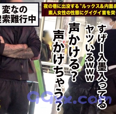 ○テーマ:夜の巷に出没するルックス&内面&etcがぶっ飛んだ素人女性の性態にグイグイ首を突っ込むドキュメンタリー○①イルミネーションが輝く新宿で激レアさんを探します。駅付近をうろうろしているとイカついタトゥーをしたお兄さんを発見!面白い人知りませんか?と聞くとお兄さんの行きつけの店にいるという事で案内して貰いお店の近くを見張っていると、店内から出てきた可愛い子を発見!太ももに綺麗な入れ墨が入った女の子に声を掛けるとスロットのプレイ代を出すなら撮影OKとの事で早速撮影開始です!②彼女の名前はさとこちゃん!パパ活で生計を立ててるという強者の彼女、今日はとことん付き合うよと言うとマッサージに行ってその後お風呂に入りたい!とどこまでも自由です。③マッサージで凝りをほぐした後露天付きのホテルに行き一緒に入浴しているとご機嫌な様子のさとこちゃん。おっぱいやおま○こに少し触れるだけであんあん喘ぎ、腰をくねらせる敏感体質です④部屋に戻ってソファーの上でイチャイチャしつつお風呂の続きをすれば、美味しそうにデカ○ンを咥えたり手で抜いたりとエロテクを披露してくれました。あまりの上手さに思わず出してしまったので男優を投下してセックス再開です。指でクリを刺激したり後ろから挿入して突き上げれば、ビクビク体を震わせて気持ちよさそうに喘ぐさとこちゃん。何度も体位を変えて激しく突かれ中出しでフィニッシュ!あまりの気持ちよさに放心状態の様でした。