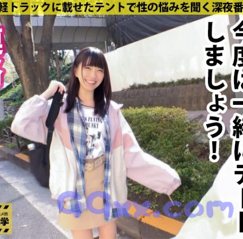 移動式テントで各大学を回り「性の悩みを聞く深夜番組」のテイでイマドキ女子大生に近づきセックスを撮影する企画です!目標は都内137大学の完全制覇!!!■報告レポート①今回お邪魔したのは都心の真ん中にキャンパスを構えるK大学!天高く聳える校舎にて、ものづくりの最先端の技術を学ぶ、エロ賢いリケジョとの濃厚接触に臨みますw②何人かに声をかけて本日トラックに連れ込んだのは、情報学部1年生のちはるちゃん。趣味はアニメ鑑賞とインドアで、友達がいないことが悩みなんだそう。人見知り&重度の受け身体質で、恋愛においてもそういったスタンスのよう。しかし、中高時代は彼氏が2人いたことがあるそうです。③ちはるちゃんは大学で学ぶ傍ら、アルバイトにも励んでいるそうで、喫茶店とレンタル彼女をやっているんだとか!レンタル彼女は人見知りを克服するために始めたそうですが、意外と続いているそうです。また、レンタル彼女のオプションで制服を着る…というものがあるらしいので、バイト代をお支払いして、急遽テントで生着替え&デートを楽しむ展開に!④流れで、性の悩みについて聞いてみると、『経験があまりないからエッチの良さを知りたい』とのこと。高額ギャラでセックスさせてもらえないか交渉してみると案外すんなりOK出していただけましたw⑤早速ショーツ越しに愛撫を始めると、恥ずかしそうな表情を浮かべながら、しっとりとおま○こを湿らせてしまいます。潤ったそこに指を挿入して弄ってあげると、ぐちゅぐちゅと卑猥な音をテント内に響かせて感じてしまうちはるちゃん。大きくなった男根を慣れないながらも一生懸命舐めたり咥えたりご奉仕したあとはずっぽりとおま○この奥まで挿入!路上にも関わらず、喘ぎ声を漏らしながらよがるちはるちゃんのカワイイお顔にぶっかけて終了!『ありがとうございました!』とニコニコ笑顔で帰っていくちはるちゃんでした!