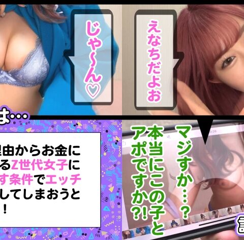 あらすじ:様々な理由からお金に困っているZ世代女子にお金を渡す条件でエッチなことをしてしまおうという企画!働きたくない!楽して稼ぎたい!責任を負いたくない!自由でいたい!etc.ヤれば楽して稼げると世の中を舐め切ったビッチな彼女たちに大人の厳しさを身体で教えちゃいます!!今回はライブチャットレディのえなちが登場!ファンを虜にするあざと可愛さと完璧なエロボディに興奮必至!!