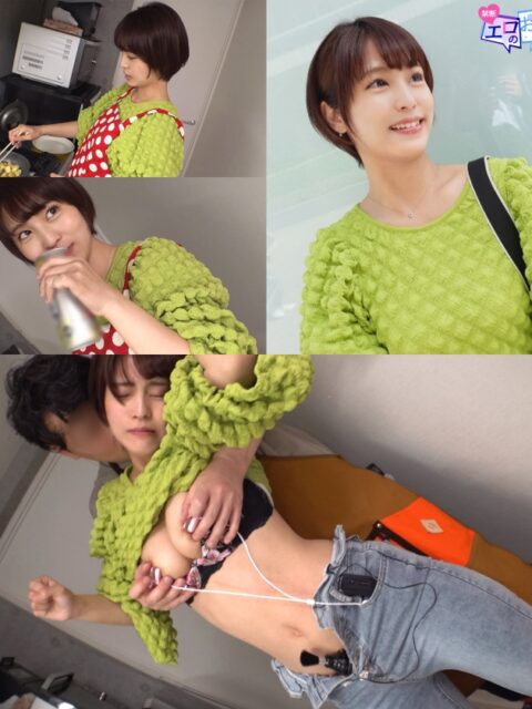 キャミをまくり生ブラの巨乳を初公開、ブラの上からオッパイを揉みまくり、実況してもらう。