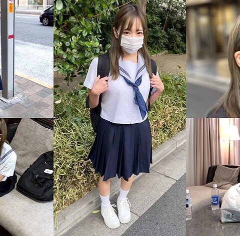 学校終わりの万垢裏垢J●【あーたん(18)】と密会。SNSの裏垢を通じて今回初めて会う。エロいことは大好きだが、学校では清楚系を演じているらしい。動画は撮られたいが顔バレは嫌らしくマスクをしている。公園で待ち合わせ→部屋へ連れ込み。制服の上から胸揉み→パンツの上から愛撫→パンツをズラしてクリ弄り→手マン(潮吹き)→手マンクンニ→制服をはだけさせて美巨乳Fカップを堪能→乳首弄り→チ●ポを触らせる→フェラ。ビンビンになったので生挿入。小刻みに動かすと「んっんっんっ」と声を押し殺して感じまくる。ピストンを強めると我慢できないのか声を荒げてイク。騎乗位→バック→正座バック→正常位。途中で上の制服を脱がす。J●には分不相応な美巨乳Fカップが露わに→しかも、色白スレンダーでウェストも細い神ボディ。オイルをぶっかけてヌルヌルテカテカにして再度挿入。正座バック→後背座位→寝バック→後背騎乗位→正常位→騎乗位。お尻はプリプリしてクビレは綺麗だし、神レベルに美しいFカップが揺れる様がエロ過ぎて堪らない。そんな身体に我慢できなくなりJ●マ●コにたっぷりと中出し&お掃除フェラでフィニッシュ。