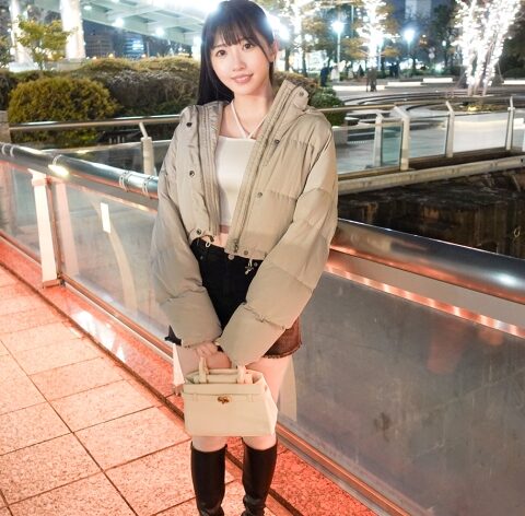 「ちょっとだけインタビューいいですか?」と声をかけたのは、白のダウンにミニスカ姿で歩くえれなちゃん(21)。