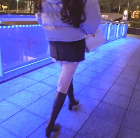 その時!ミニスカートにロングブーツ!スタイル抜群の太ももにロックオン!ターゲット補足!