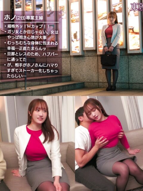 即ヤレちゃう東京のビッチ女たちと遊んじゃう企画。今回の美女はハプバー通いのセックス狂い、ほのちゃん!専業主婦にも関わらず、旦那さんとのレスが原因でいろんな人とセックスしちゃっているようです。タイツを豪快に破いてマ●コをおもちゃで責めまくり!溜まっていた性欲が溢れて止まらない!喉奥フェラは粘度マシマシなヨダレのお陰でローションいらず!?Hカップのデカ乳揺らしてバック突き放題!すけべコスに着替えて連戦不倫セックス!!