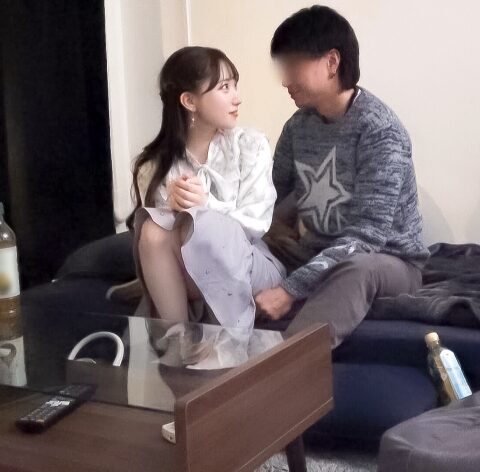 酒を飲みつつ、胸チラ、あらわな太もも、無防備な姿がすでにエロい。