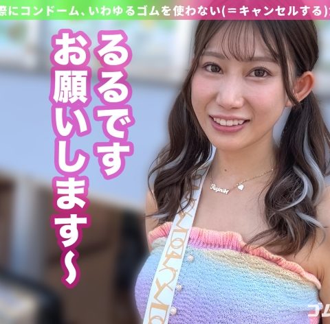 あなたは『ゴムキャンセル界隈』をご存じだろうか?エッチをする際にコンドーム、いわゆるゴムを使わない(=キャンセルする)女たちが存在するのだ!そんな界隈から、本日はるるちゃんに来てもらいました♪色んな人とヤりたいからしばらく彼氏を作っていないという生粋のヤリマンギャル!手マンで大量潮吹きしちゃう敏感ドM!ツインテ鷲掴みで喉奥堪能イラマチオ!当然ノースキンで挿入!生ハメでギャルのマン肉を味わい尽くす!!連続中出しパーティー♪