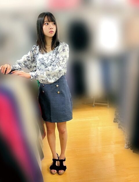 アパレルスタッフに近づき密着パンツ撮影