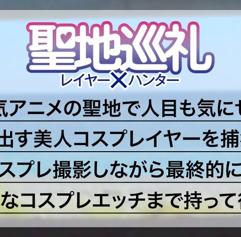 アニメ、ゲームの舞台を巡りながら同じ世界観を味わうことができると言われる「聖地巡礼」。そこには、その舞台に溶け込むように同じキャラのコスプレをして映え写真を狙うコスプレイヤーが存在する!! これは、コスプレカメコとして聖地に趣き、コスプレイヤーに声かけ&写真同行を狙う!そして最後はしれっとセックスを目指す企画。