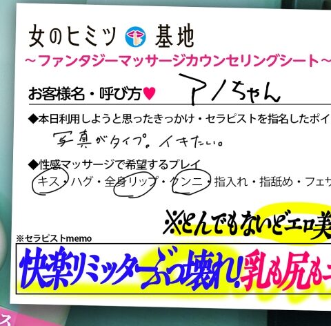秘●基●ファンタジーマッサージ カウンセリングシート