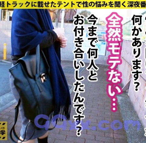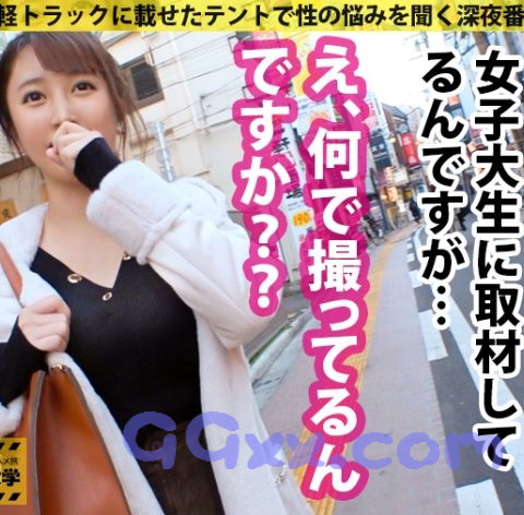 移動式テントで各大学を回り「性の悩みを聞く深夜番組」のテイでイマドキ女子大生に近づきセックスを撮影する企画です!目標は都内137大学の完全制覇!!!■報告レポート①今回お邪魔したのは「T大学」勉学に励むエロいJDを探します。そこで声を掛けたのはポニーテールが可愛いつぐみちゃんです。家が遠いのが悩みだと言う彼女、大学ではサークルを3つ掛け持ちして他大学との交友も広めて日々楽しんでいるようです。②トークが一通り盛り上がったところでちょっと踏み込んだ質問もしていきます。経験人数は20人位で彼氏は4人位と殆どがワンナイトの彼女。どうやらセックスは好きな様子。そこで今からAV男優を呼ぶので気になることを質問してみませんか?と持ちかけると興味津々のようなので早速AV男優さんに来てもらうことにしました。③10分後、到着した男優と楽しく談笑するつぐみさん、緊張も解れたのか映画館でセックスしたりととんでもない話も飛び交いますww警戒心も0なつぐみさん、先程からずっと気になっていたのがチラチラと視界に入るパンチラ。話の流れでそっと指でパンティの上からクリを触ってみても全く抵抗しません。少し指でグリグリしただけで腰をくねらせしっとりと濡れてきて、最後は脚をビクンと跳ねさせてイってしまいました。④後ろから柔らかいおっぱいを揉んで乳首を吸ったりと堪能していると、徐々に表情がとろんとして気持ちよさそうに喘いでいます。手マンでとろとろになったナカをかき混ぜれば、先程よりもビクビク体を震わせて酔いしれているつぐみさん。ち○ぽを差し出せば嬉しそうに見つめ、ゆっくりと下から上へ下を這わせます。硬くなったち○ぽを正常位で挿入すれば、キュウっと締め付けて締まり具合が最高のおま○こ。突き上げる度に大胆に揺れるおっぱいを眺めながら何度も体位を変えてつぐみちゃんのナカを堪能しました。最後は濃い精子を口いっぱいに含んでスッキリした顔を見せてくれました。
