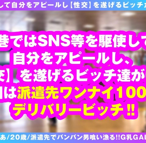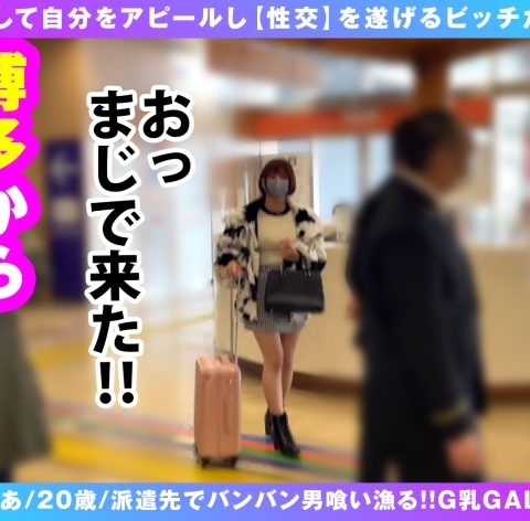プレイ内容:高速バス乗り場で待ち合わせ、博多から産地直送の100%ビッチ登場、さっそく意気込み発表、なんと派遣先でのワンナイ率100%のデリバリービッチ、ホテインするやいなや男優にまたがり愛撫、肉食発揮、でかでかG乳披露、セルフイラマで喉奥攻め、スーパーパイズリ、手マンで大量潮、生性交開始、正常位、騎乗位、涎ダクダク攻め、バック、ナカ出し、一発じゃ終わらない終えられない底なし性欲のデリバリー博多ビッチ美少女最高です