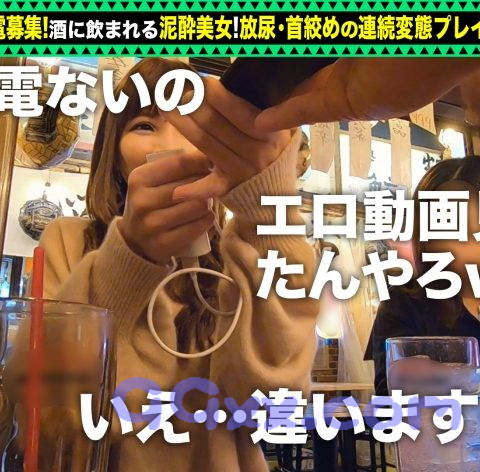 「充電させてくれませんか?」と優しい美女にお願いして、スマホを充電させてもらいつつエッチな充電もしちゃうスケベ企画。今回充電器を貸してくれた女神は、れいかちゃん。ご友人と飲んでる最中に来てくださいました!仕事終わりにナンパスポットで飲んでいたようですが、もしかしてアッチ目的ですかね?wモバイルバッテリーで充電させてもらいつつ、居酒屋でお話をしていると彼女のスケベ心が段々と見えてきました。これはお持ち帰りできる!友人さんがお帰りになり、れいかちゃんが残ったのでホテルへご招待♪到着してすぐに「おしっこしたい」と言われてしまったので、お風呂でおしっこ鑑賞開始!恥ずかしげもなく放尿!充電も貯まりきっていないので、エッチな充電もしちゃいましょう!スレンダーな身体に美しいおっぱい、そしてすべっすべの桃尻!上も下も揉んでいると、マ●コも濡れてきました!電マを当てると床に倒れてイキまくり!自分からチ●コをしゃぶってきましたwびっしゃびしゃマ●コが出来上がったところで挿入!ベッドにも行かずに床やソファで濃密に絡み合い、腰を振り続けます!そしてベッドで首絞め高速ピストンからのおっぱいに大量射精!めちゃめちゃエッチなさせこちゃんでした♪