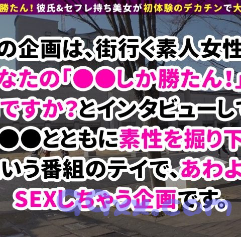 インタビューを通して、【○○しか勝たん!!】とともに素性やエッチな体験談を掘り下げるという企画です!ヤリマンな本性を全開にさらけ出してもらいつつ、じっくりと女の子の美BODYを味わっちゃいましょう♪彼氏しか勝たん!と話す、みなさんと出会いました。ギャルな見た目なのに一途ですね♪お話していると、「彼氏のアレが小さくて…」と夜の営みに関して少し不満があるようでした。欲求不満ギャルキター!言葉巧みにホテルへ誘っちゃいます♪ホテルでチ●コを見せると「デカッ!!」と大興奮w喜んでチ●コを咥えてフェラしてくれます!キレイなマ●コを手マンすると潮噴射!!潮が止まらないwww窓際でも猛烈手マン!二度目の豪快な潮噴射です!そしてテーブルで三度目の潮噴射!無尽蔵のエロ汁ギャルですねw手マンに満足してくれたのか、もう一度猛烈積極フェラをしてくれます。ぐっぽぐっぽとしゃぶり尽くし、マ●コを自ら開いておねだりポーズ!小さな身体を持ち上げてガンガン突き回し、お尻にぶっかけ射精!ムード満点のお風呂で汗を流し潮を吹いた後は、ベッドで夢かわランジェリーを着ての二回戦開幕!!上から覆い被さりマ●コの奥まで刺激します!首絞めや玩具責め、エロいことを沢山ヤッちゃいます!!最後は中出し!!「デカチンしか勝たん!でした♪」と満足してくれたようです♪