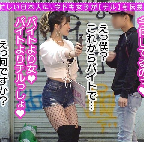 「私とCHILL(チル)しませんか?」せかせか忙しい日本人のために、イマドキ女子が【チル】を伝授します!!…な~んてね♪まったりなんかさせません!大人顔負けのテクニックを持ったビッチ女子たちが街行く男たちをチルスポットに誘い込んで好き放題痴女りまくる!逆ナンパ企画【痴ルっちゃう?】今回の痴ルGirlは経験人数500人超えのチョロマン女子大生ワカパイ(22)ぱっくり開いた胸元から覗くHカップを武器にバイトへ向かう大学生を逆ナンして見事ゲット!自慢のパイズリで育て上げた勃起チ●ポをこれまた自慢のキツマンにお迎え!弱点を的確に見極め大学生くんの乳首をロックオン!「一回イっときなよ♪中出ししちゃえ…♪」圧倒的責めテクに大量射精!ぷりっぷりの濃厚精子を上下のお口で余さずゴク飲みしてもまだ足りない!ビューっとハメ潮噴射して超キモチい同時イキ!死ぬほどエロいワカパイに痴女られ●され昇天FUCK!!#痴ルっちゃう?B:100 W:60 H:91
