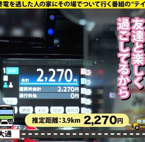 終電を逃した女性に「タクシー代を支払うので家に行ってイイですか?」という某番組のフリをし、声をかけ家まで行ってやっちゃおうという企画です。