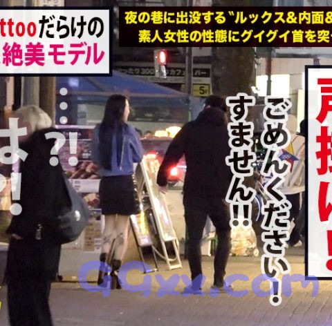 ○テーマ:夜の巷に出没するルックス&内面&etcがぶっ飛んだ素人女性の性態にグイグイ首を突っ込むドキュメンタリー①今回は渋谷にて激レアさん探し!ホテル街をぐ~るぐるしていると、タトゥが山盛り入ったスレンダー美女を発見!後をつけると、友達と合流して、クラブに入ってゆきます。②クラブの中までついていき、しばらく観察。意外と男遊びなどをしている様子はなく、静かに飲んでいる様子のお姉さん。その後もしばらく尾行…友達と解散したところで声をかけに行きます!③近くで見ると綺麗ながらも顔面ピアスでちょと怖そうな雰囲気のお姉さん。しかしご飯を食べながら密着取材をさせて頂けないか聞いてみると、案外ノリノリでOKしてくれました!④名前はスイさん。『飲んでなかったら声をかけられてもはガンする無視タイプ。』だそう。スイさんは普段、モデルのお仕事をされてるとのこと。最近だとアジア圏の外国のお仕事がメインだそう。タトゥーはアジアや中国圏で流行っているとのことで、スイさんも海外関連のモデルのお仕事にひっぱりだこのようです。タトゥは恋をした時などの、スイさんにとって忘れたくない思い出ができた時に入れがちなんだそう。そろそろ家に帰るとのことなので、ついて行ってもいいか聞いてみると、ためらいながらも、許可してくださいました!部屋に到着して、明るい照明のもと、全身にぎっちりと彫られたタトゥを観察。中国語や韓国語などの外国の言葉や、血や虫などのちょっとグロテスクな変わったタトゥが印象に残ります。そしてこれらのタトゥ一つ一つにスイさんなりの深い思い入れがあるそうです。⑤スイさん部屋の収納を物色すると、大人のおもちゃやらコスプレ衣装やらがどんどん出てきます。その中からセーラー服を取り出し着替えていただきます。セーラー服に身を包んで出てきたスイさん。パンツ丸見えのエッチなセーラー服ですが、抜群のスタイルとアーティスティックなタトゥのせいか、不思議とエロいというより芸術品を眺めているかのような気分になります。⑥そして!ここからはセックスが上手い人を呼び出し、二人きりのエッチを楽しんでもらいます!全身タトゥのスレンダー美女のセックスは是非本編でご確認ください!!!