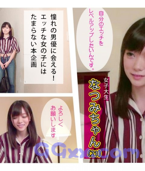 憧れのAV男優に会える!えっちな女の子には夢のこの企画。今回応募してくれたのは21歳女子大生のなつみちゃん♪黒髪ストレート、健康的なボディーにへそ出しの服でとっても元気な女の子!普段とはひと味違うセックスを求めて応募してきてくれました♪早速してみたい体位を聞いてみると出てくる出てくるwwもう今回全部叶えちゃいましょう!!まずはねっとりキスして少しずつエッチな雰囲気に「おっぱい舐めて…」唾液まみれになるまで舐めてあげると完全にスイッチON!その後もおもちゃをクリに当てて即イキ→まだまだ足りず物欲しそうにおち〇ちんをなでなで…正常位も騎乗位もバックもどれも大好き!甲高い声を上げながら何度も絶頂しちゃいます(´艸`*)♪