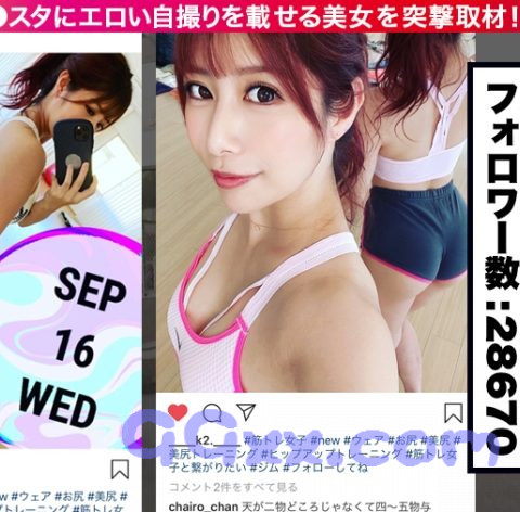イ●スタでエロい動画をUPするビッチな女子にコンタクトを取り、どうにかこうにかSEXしちゃおうという、新時代SNSナンパ企画!①最近渋谷に出来たNewエリアの宮下パークにて待ち合わせたのは、マリンちゃん24歳。ケツスタグラマーとして活躍している彼女ですが、確かにヒップがすっごぉい!!ショートパンツからお尻がはみ出ちゃってます。②路上ではゆっくりお話出来ないので近くのカフェに移動してお話を聞きます。ワークアウトをするようになったきっかけを伺ったところ、学生時代すごく太っていて当時付き合っていた彼氏に体型を理由にフラれたのがきっかけだそう。それからトレーニングを始め身体が絞れてくると、周りの視線も感じるようになり、ジムで初めて声をかけられたことを皮切りにいろんな人とヤルようになったようです。③そんなマリンちゃんですが、なんでも『フェラ』に相当な自信があるそうで、半信半疑だった我々にむきになったマリンちゃんは、「じゃ、今すぐヤろう!!」と言って連れてこられたのは、近くのトイレ…。マリンちゃんの本気フェラに気持ち良すぎて男優さんも直ぐにイッてしまいます。④早速ホテルに移動すると、エッチがしたくてたまらないマリンちゃんは男優さんにまたがりキスをしてプレイが始まります。大好きなおち●ちんが入ってくると身体を震わせてイキまくります!まさにまな板の上の鯉状態!!ハメ潮をまき散らして何度も絶頂し、恍惚の表情でセックスを堪能しています。1回では全然物足りないマリンちゃんは、貪るように2回戦、3回戦と濃厚なセックスを繰り広げていくのでした♪