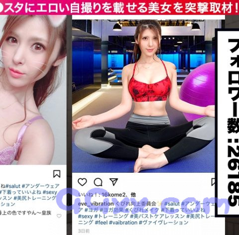 イ●スタグラムでエロい写真をUPするビッチな女子にコンタクトを取り、どうにかこうにかSEXしちゃおうという、新時代SNSナンパ企画!①今回は衣・食・住のすべてがおしゃれな街である恵比寿で待ち合わせ。フォロワー数はゼロの数を一瞬で認識できないほどw週5であるジム通いの写真をアップしている。②今、働いていらっしゃるのは「バイブバー」!あのバイブをコンセプトしている渋谷のエロスポットである。前職が医療事務で忙しくて、エッチができないっと辞めてしまったw③エロに目覚めたの12歳で、常に誰かに見られたいっと思って、普段は露出度高めを意識している。しかも、今回は職場のアピールとまではいかないが、マイバイブをバックいっぱい!大量にお持ちになっていますwwwエッチが出来て、自分をさらけ出してバイブも宣伝できるとウキウキです♪④ジム通いで超スレンダーボディが一心不乱に乱れまくります!イケメンに弱い彼女は序盤は緊張でどこかぎこちないが、バックのガン突きピストンで濃厚中出しからリミッターが外れた!!⑤スポーツウェアで二回戦!バイブと巨根で疑似3Pで鍛えた腰をクネクネとイヤらしい動きを見せつける!!お風呂で余韻のカラミからの美しい下着姿で三回戦!!感じに感じまくったカラダをラストスパートの激ピストンで捲し立てる!!メチャクチャ大満足で力尽きちゃったのでしたwww