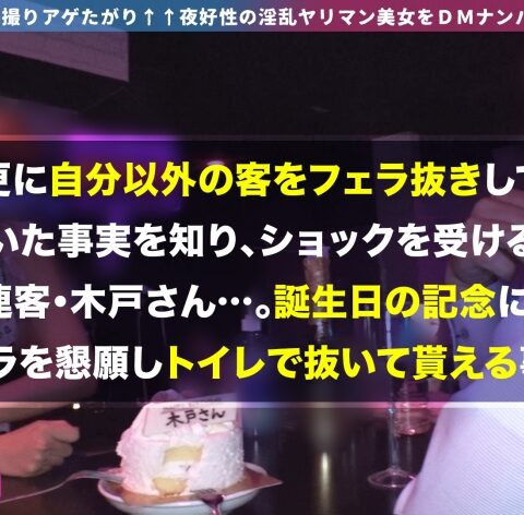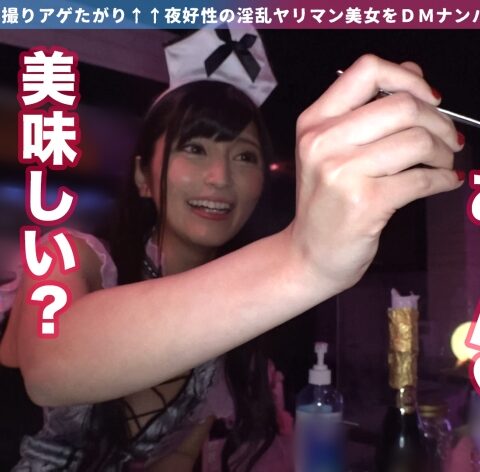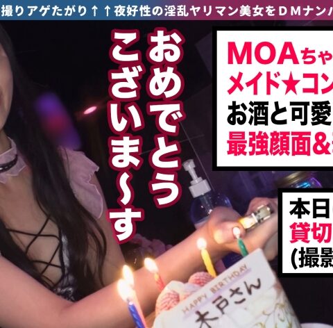 SNSにHな写真を上げているヤリマン女子にDMして、流れでそのままホテルでSEXまでしちゃう企画です。今回の映え女子はMOAちゃん!コンカフェへ直接会いに行っちゃいました♪店内には本日誕生日の常連さんが!スタッフも一緒にお祝いをしていると・・・誕生日プレゼントということで、MOAちゃんが常連さんを一発抜いてくれるそうですw我々もその現場に立ち会うことに。ぐっぽりとチ●コを咥えて口の中一杯に精液が満たされました。噂通りのエロさ!お店を閉める時間になり、ホテルへ移動します。お酒を飲み直して、セックスしちゃいますかぁ~~!美しいくびれ、エロい尻、MOAちゃんのエッチな身体が誘惑してきますwパイパンマ●コに手マン&クンニでゴリゴリ責めると、特大潮吹き頂きました!!お店でも見せていたフェラテクでチ●コが吸い上げられるwもう出ちゃいそうなので、挿入します!!床、ソファ、テーブルと場所を選ばずピストン!最後は中出しキメちゃいました!!まだ満足し足りないMOAちゃんに、チ●コ追加!衣装チェンジで2回戦突入ですwww可愛い衣装の上から、オイルをびしゃびしゃ掛けちゃいます!テッカテカにエロく輝いたMOAちゃんはチ●コにキますねwバックから突いて、口ではチ●コを咥えてもらい・・・2本で責めまくりッ!!結局中出し外出しで、MOAちゃんを精液まみれにしちゃいましたwww