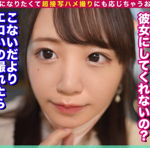 あらすじ:食いしん坊なおっとり系JD【こと/18歳/女子大生】今日は同じサークルの『ことちゃん』と食べ歩きデート!【チーズドック】→【アイスマカロン】→【サムギョプサル】→【ソフトクリーム】と、ことちゃんの食いしん坊っぷりが伺えます(笑)。すかさず食レポお願いするもなかなかのド下手っぷり…(愛らしい(笑))新大久保を満喫したあとはもちろんホテルin。部屋につくと…あれ、ことちゃんのお腹がぷっくりしてる()。恥ずかしそうに『胃下垂だから///』と答えることちゃんもまたまた可愛い(笑)。お腹を見るフリをしてそのまま服を脱がすとまるで赤ちゃんのようなスベスベ色白美肌→ぷっくり膨れたおわん型のお胸(Fcup)!!汚れなきカラダに今にも暴発しそう。服を脱がされ緊張してるのか口数が少ない….心をほぐすため(?)に濃厚キス。すると緊張だけじゃなく下も少しずつほぐれていつの間にかおマ●コが愛液まみれ…。すると、ことちゃんもえちえちスイッチがONになったのか乳首舐めたりビンビンになったおチ●ポをヨダレたっぷり垂らしてフェラ。お互い身体もあったまってきたしコンドームを忘れたフリしてナマで挿入…と思ったけど、ことちゃん俺が忘れるの想定してかゴムを用意しててあっさり作戦失敗…(笑)そんなに世の中甘くなかった。(クズ)。丁寧に装着してもらい挿入。ゴム越しでも伝わる膣内のあたたかさ&バツグンの●め具合は油断すれば子種噴射レベル。膣奥をピストンする度プルンと揺れる美乳&トロトロえっちな表情に限界…バックで激ピス→同時イキ。真っ白なお尻にぶっかけました。(達成感)ひとまずシャワーを浴びてベッドへ。まぁ一回で終わるわけもなく…お互い舐め合いっこして再び準備万端!ことちゃんにゴムをもらおうとしたらもう切らしちゃってるみたい…キターー!なんとか説得→しぶしぶ了承を得て念願の生挿入(笑)。ゴム無しってこんなに気持ちいいの?ってくらい気持ちいい!!(笑)ち●ぽに感覚を全集中させピストン。ことちゃんもゴム無しのが気持ちいいのかさっきよりも感じてるご様子。そのまま休む暇もなくハードピストン…本当はこのまま中に出したかったけど我慢して、発射寸前でかわいいお顔にぶっかけ顔面シャワーフィニッシュ…!顔にかかった精子をごっくんして一言『ごちそうさま…///』と最初から最後まで(えっちな)食いしん坊さんでした(笑)