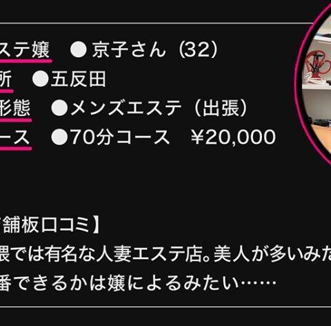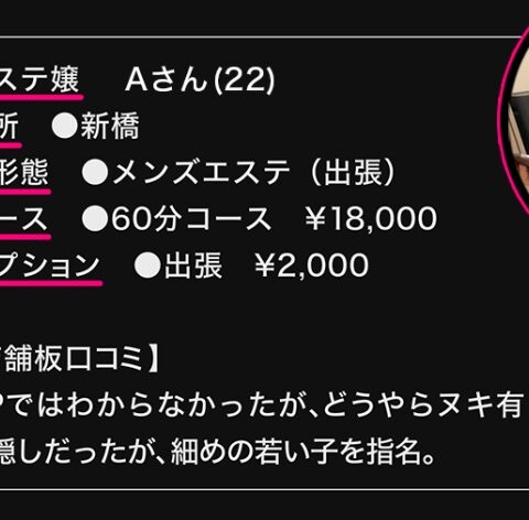 【今回のメンエス嬢】