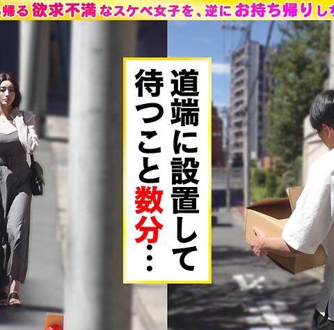 大人のオモチャ入りの段ボールを街中に置いて性に飢えた女を炙り出す!今回のスケベ確定女子はエステティシャンの『すみれ』さん。置いておいたローターを持ち帰ろうとする所を突撃し、緊急持ち物検査開始♪インタビューの流れで、今回も首尾よくホテルへお持ち帰りしちゃいましたw職業はエステティシャンということで、客を癒やす術に長けてるすみれさん。しかし2年間彼氏なしの彼女は、自身を癒やしきる事が出来ていないご様子…。ならば我らスタッフにお任せあれ!どんなどスケベ女子でも玩具で煽り癒やしてみせます!…ということで、なんやかんや勢い余ってSEX開始www突くたび揺れる見事な巨乳と巨尻の舞!!かなりの回数絶頂しまくるすみれさんは、これぞどスケベ女子って感じでめ~~っちゃエッチです!!望まれるがままに中出ししちゃって、スタッフもとことん癒やされました♪#巨尻#お姉さん#電マ#ローター#巨乳#おもちゃ#アナル舐め#中出し#騎乗位#ランジェリー【ご自由にお持ちください】B:98 W:65 H95
