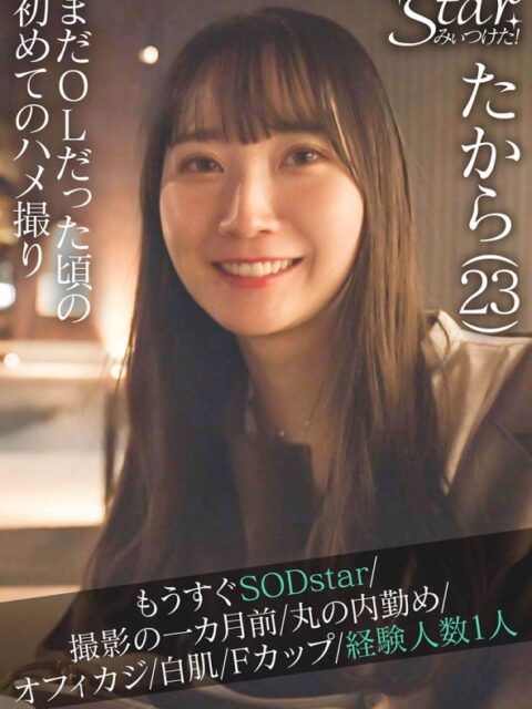 SODstar 多香良のデビュー前、まだ前職のOLだった頃の初撮り映像。経験人数1人、約2年セックスをしていなかった彼女が初めて知らない男と2人きりでセックス。ため込んだムラムラを一人オナニーで発散していたこの頃の多香良は、少し触れる度に過敏に反応。キスだけで目がとろけ、白い肌がみるみる紅潮していく…。丸の内某所。オフィスカジュアルに身を包んだ女性は脱がしたらスレンダーFカップボディ。緊張と初々しさ。だけど、どんどん快楽にハマっていく。彼女がAVを選んでくれて良かった。そう思わしてくれるOL時代最後のセックス。