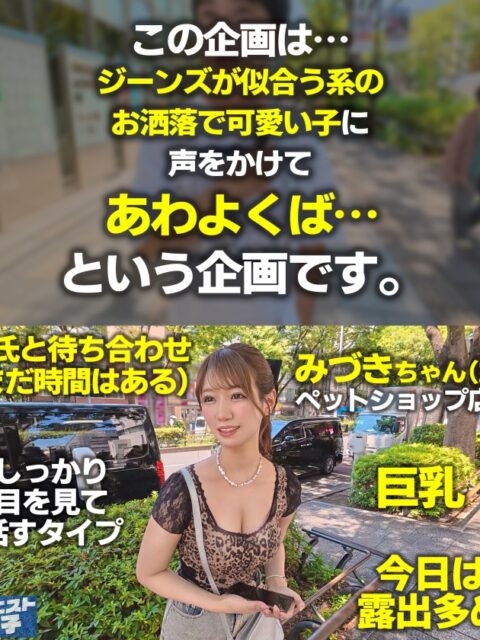 ジーンズが似合う素人女子に声をかけ、ファッション撮影口実にSEXまで持ち込んじゃうエロ全開ベストジーニスト企画!今回はペットショップ店員みづきちゃん(23)をGET!!露出多めのデニム姿がセクシー!むっちり美尻を鷲掴み、パイパンマ●コを顔面騎乗で舐めまくる!全力ピストンでギャルの身体を堪能し尽くす!!