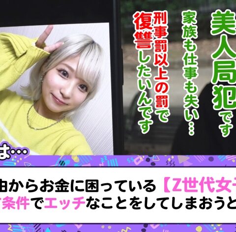 あらすじ:様々な理由からお金に困っているZ世代女子にお金を渡す条件でエッチなことをしてしまおうという企画!働きたくない!楽して稼ぎたい!責任を負いたくない!自由でいたい!etc.ヤれば楽して稼げると世の中を舐め切ったビッチな彼女たちに大人の厳しさを身体で教えちゃいます!!今回は自然にイケメンムーブを振りまくバイセクシャルのセリナちゃん。男とのセックスで初めて見せたギャップありすぎ衝撃メスイキ絶頂 !!