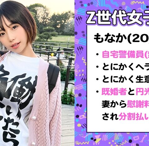 あらすじ:様々な理由からお金に困っているZ世代女子にお金を渡す条件でエッチなことをしてしまおうという企画!働きたくない!楽して稼ぎたい!責任を負いたくない!自由でいたい!etc.ヤれば楽して稼げると世の中を舐め切ったビッチな彼女たちに大人の厳しさを身体で教えちゃいます!!今回は「働いたら負け」をモットーに基本はパパ活で生きている自宅警備員のもなかちゃん。以前パパ活を仕掛けた相手が既婚者で相手妻に慰謝料を請求されてしまい100万円の借金があるwおじたちの溜まりに溜まったイカ臭チ●ポでハメ狂い!のけぞり!絶頂!9発射!